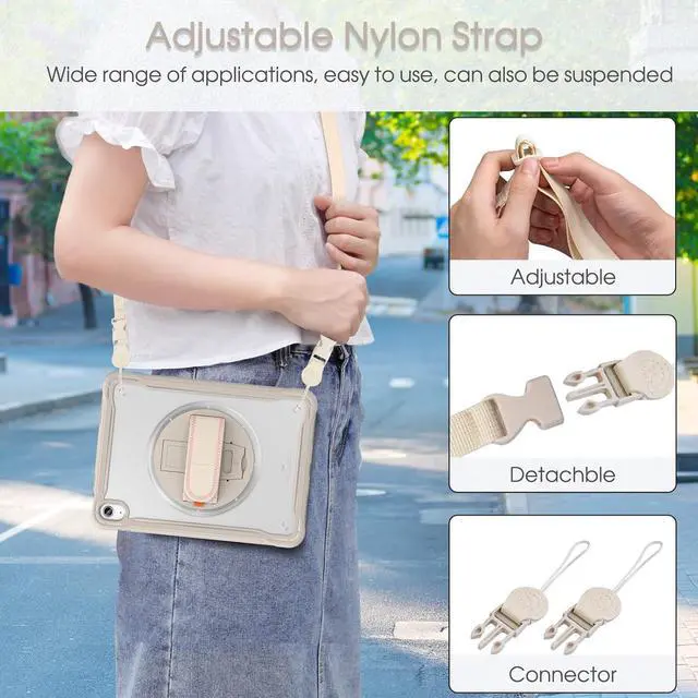 Detachable & Adjustable Should Strap: Come with a detachable & adjustable shoulder strap, let your hands-free, provide more convenience during hiking, traveling, and other outdoor activities. And you can also use it to hang your iPad 10.9 inch in kitchen, car seat or wherever you want for any entertainment