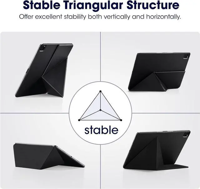 [4 Standing Angles] This iPad Pro 2024 case can be folded in two ways, providing four different standing angles for taking Zoom calls, web browsing, drawing, etc. The triangle structure of the multi-fold folio ensures a stable standing position, whether in portrait or landscape.