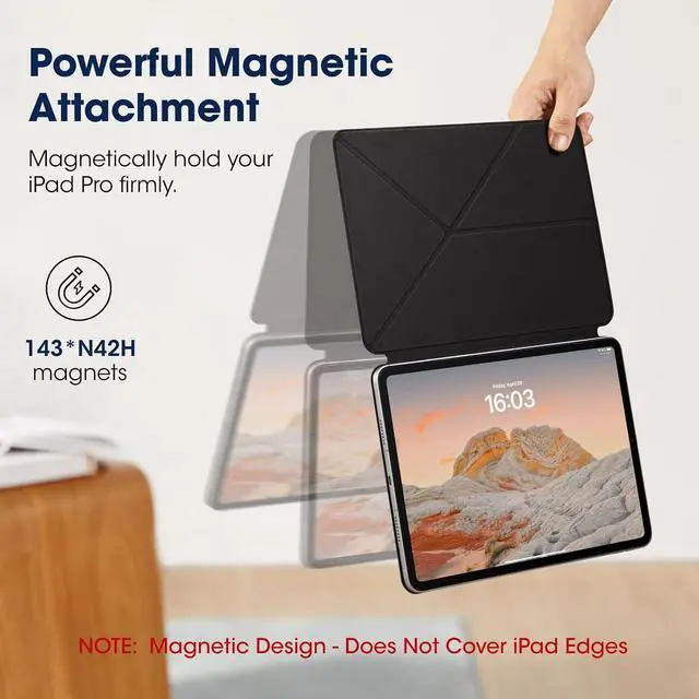 [Upgraded Premium Material] The skin-friendly polyurethane leather is dust and scratch-resistant and adds a touch of style. Weighing only 8.47 oz, this iPad Pro m4 case is slim and easy to carry.