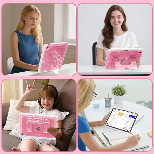 Multi-Functional KickstandOur iPad 10th generation case has a multi-functional kickstand for horizontal and vertical viewing, freeing hands and enhancing comfort. Meanwhile, when you want to move your iPad, the stand can serve as a handle. Just pop out the kickstand to the vertical direction, and you can lift and move it at any time.