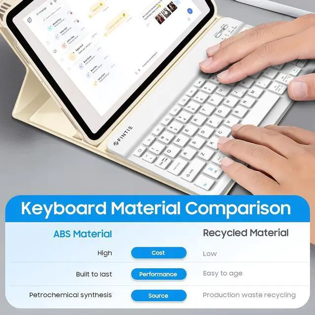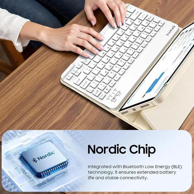 Turn Your Tablet into a Laptop: A Keyboard that supports iOS and Android Systems. Experience seamless operation with no need for switching. Magnetically detachable super slim 7mm and light weight bluetooth keyboard with 14M range. Ergonomic and mechanical scissor keys with rebound feature to reduce noise, enjoy comfortable typing even long hours.