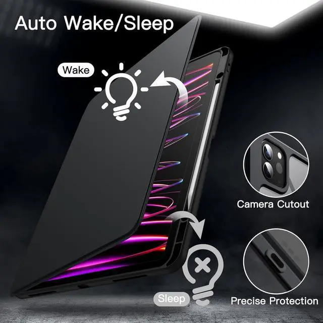 [Auto Wake/Sleep] Wake up the screen or bring it to a sleep mode by opening or closing the front cover. More energy-saving, and the built-in magnet keeps the case securely closed