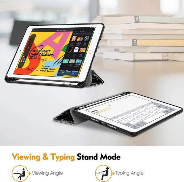 Soft TPU back shell protect your iPad 10.2 from shocks, drops and impacts. Soft microfiber lining with PU leather exterior, prevent your tablet from scratched.