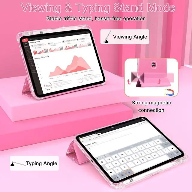 Two Usage AnglesThis iPad 11th 11 inch case/iPad 10th 10.9 inch case has two angles for typing and viewing, you can easily adjust the tablet case to the most comfortable angle for your needs at the moment. It frees your hands for other activities.