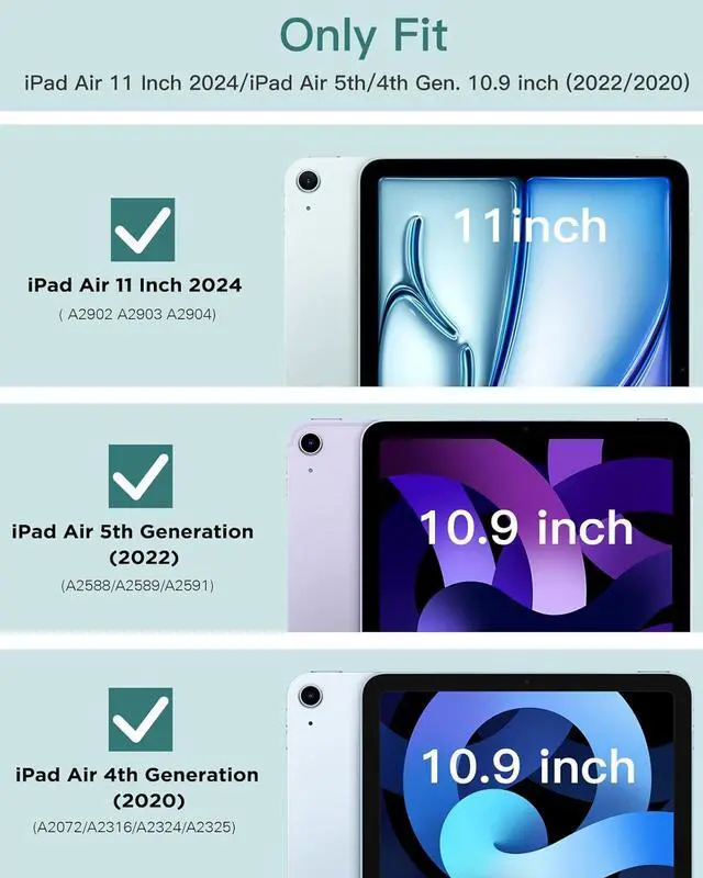 Perfect Compatibility: Preciously designed for iPad Air 11 inch (M3/M2) 2025/2024 (Model number: A3266/A3267/A3270/A2902/A2903/A2904), iPad Air 5th/4th