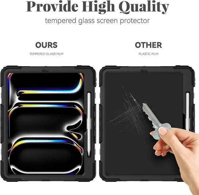 Protective Tempered Glass Screen Protector: Includes a 13-inch hard, scratch-resistant tempered glass screen protector. Crafted from 0.33 mm high-quality glass, it offers exceptional sensitivity and transparency, seamlessly working with the iPad Pencil. Tempered glass iPad protectors offer superior durability, scratch resistance, and a smoother touch experience than plastic films.