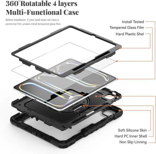 Exclusively Designed Rugged Case for iPad Pro 13-inch M4 2024 (Models A2925, A2926, A3007). Not compatible with any other iPad models. Please verify your iPad' s model number on the back before purchasing. Features precise cutouts for effortless control and connectivity. Provides ultimate protection tailored for your device.