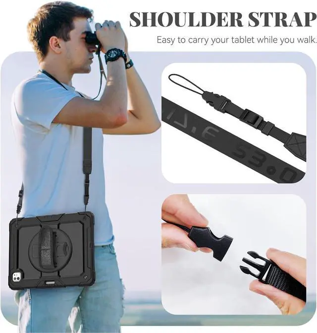 The Removable Shoulder Strap allows you to securely attach it to any two corner holes of the case, making it easy to carry your iPad on your shoulder during your commute. Perfect for hiking trips too, as it lets you quickly grab your iPad to capture memorable moments with ease, ensuring you never miss out on the perfect photo opportunity.