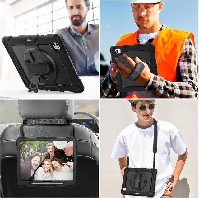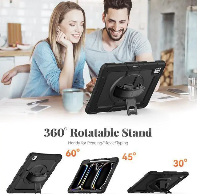 Equipped with a 360° Rotatable Kickstand for versatile viewing angles and outdoor convenience, this case features a soft, rotatable hand strap that securely holds your iPad Pro 13 2024, preventing accidental drops. Ideal for service personnel, doctors, outdoor adventurers, office workers, kids, educators, and construction professionals.