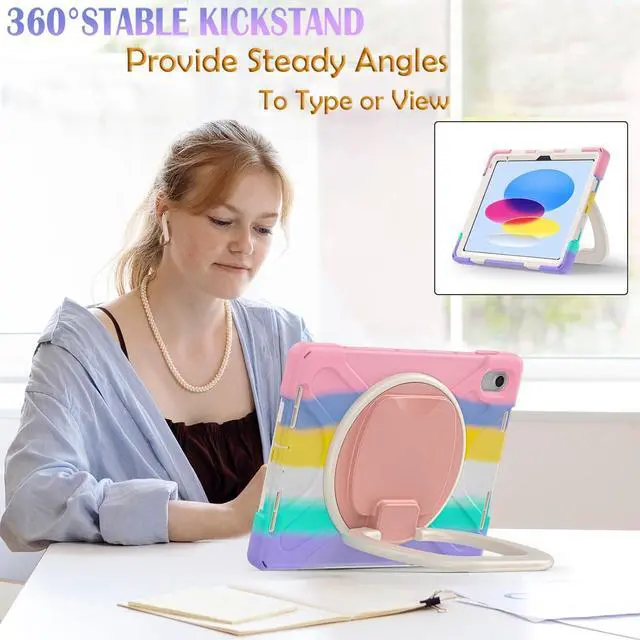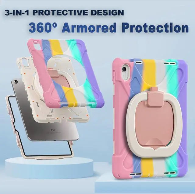 Multi-Function Handle & KickstandThe 360° rotating, foldable handle opens and closes easily, offering stable viewing angles for watching videos, reading, or typinghands-free. The built-in pencil holder allows quick insertion and removal, keeping your stylus within reach for added protection and convenience while using your iPad.
