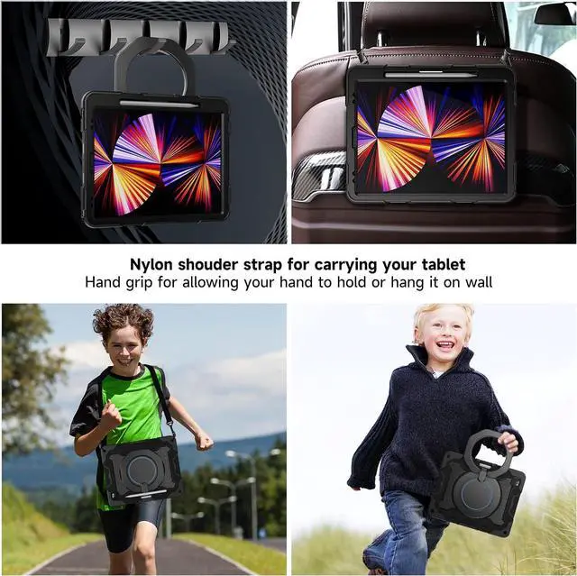 [Wireless Charging & Detachable Shoulder Strap] There is a Stylus Pen Holder to let your pencil charge & Equip with 59 inches adjustable and detachable shoulder strap, ideal for tour, restaurant order, household products introduce, engineer outside operation, teacher etc, shoulder strap can hung on the back seat in car, create a mini movie theater for your kids