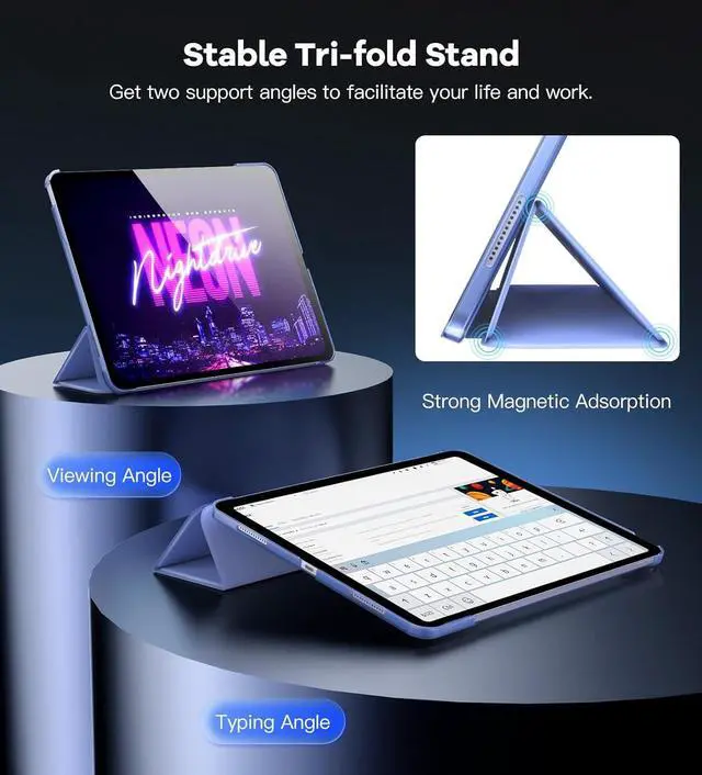 Two Viewing Angles: The iPad air 13 case with a trifold stand provides 2 convenient stand positions for reading, watching movies, or typing