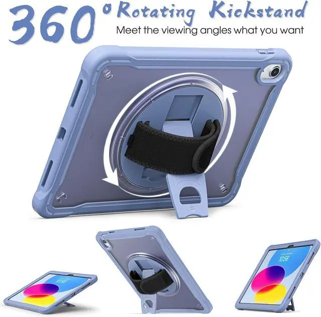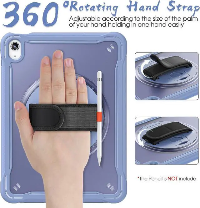 • 360° Rotatable Kickstand and Velcro Handle: This iPad case features a rotatable and collapsible kickstand that allows you to position your iPad as you see fit, suitable for drawing, studying, working or watching a movie. The adjustable Velcro hand strap is easy to grip and ideal for students, teachers, doctors and waiters