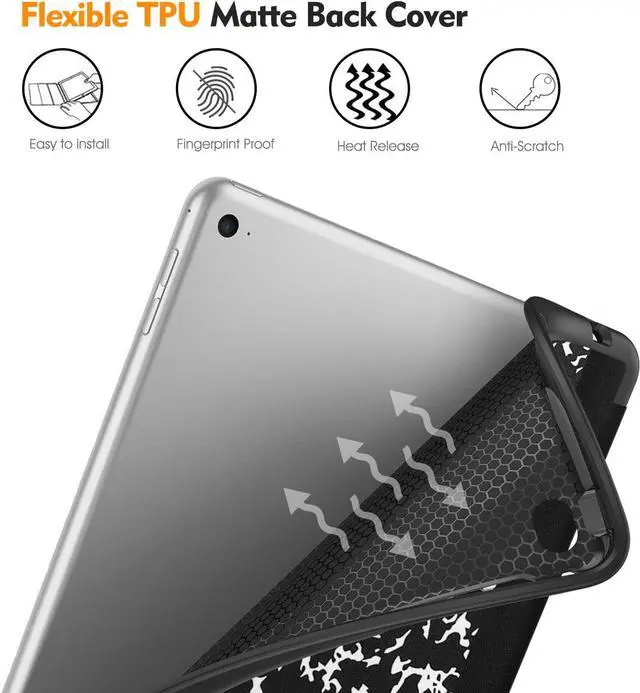 Soft TPU back shell protect your iPad 9.7 from shocks, drops and impacts. Soft microfiber lining with PU leather exterior, prevent your tablet from scratched.