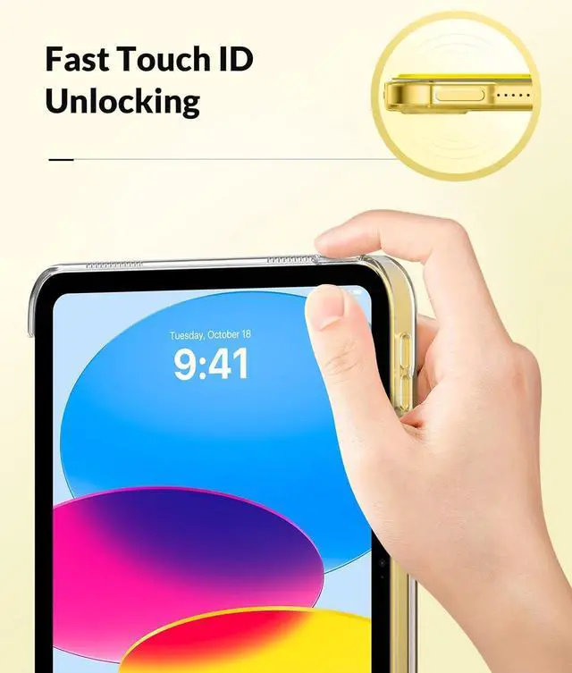 Support Touch ID Function and Auto Wake/Sleep - Built-in magnetic strip, our iPad 11th/10th gen Case can automatically wakes or puts your tablet to sleep when the lid is opened and closed. Protects and extends battery life; precise cutout also completely supports newest touch ID key function
