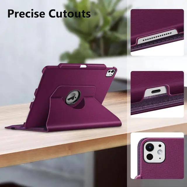 Fintie Rotating Case for iPad Pro 13-inch (M4) 2024 with Pencil Holder - 360 Degree Swiveling Protective Stand Cover with Auto Wake/Sleep, Purple