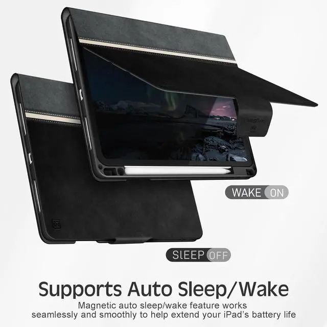 Auto Sleep/Wake: Support auto-wake/sleep function with easy snap on and off the iPad protective case to help extend your iPads battery life