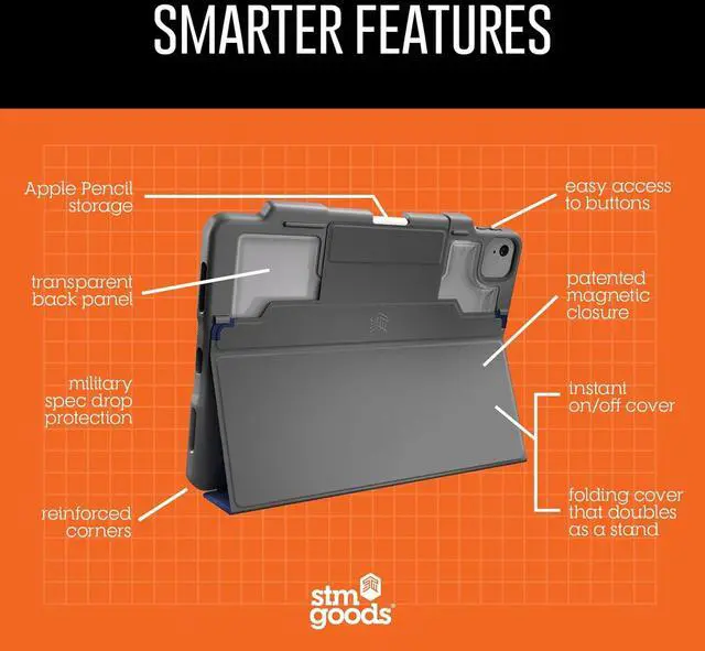 APPLE PENCIL STORAGE: This Apple iPad Air M3 M2 6th Gen, 5th Gen, and 4th Gen case has integrated storage for the Apple Pencil Pro/Gen 2 & USB-C, making it the perfect solution for office or education use.
