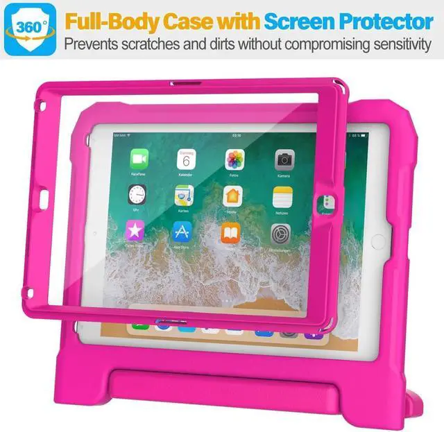 Versatile StandBuilt-in a rotatable handle makes easy for kids to carry it around and allows you fold it back to convert into a sturdy stand for hands-free viewing and comfortable typing.