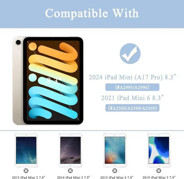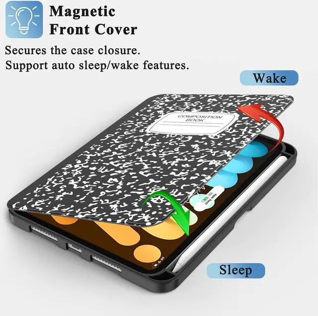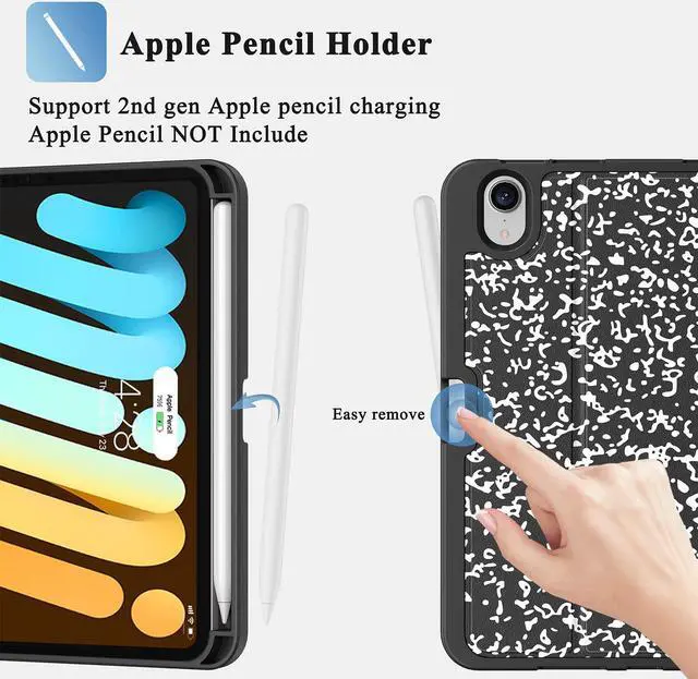 FunctionBuilt-in pencil holder makes iPad mini 6th generation 2021/mini 7th generation (A17 Pro) 2024 8.3 inch case convenient to carry and better protect your Apple Pencil (Support 2nd Pencil wireless charging). We also support auto sleep/wake feature