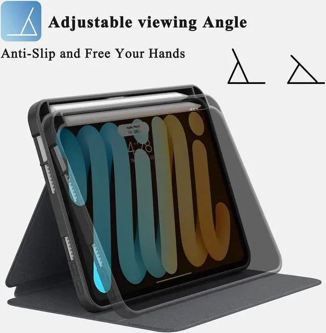 Multi anglesAnti-slip front stand shell (Not trifold) creates different angles for viewing or typing; magnet secures the ipad mini 6 case closure, easy to snap on and off