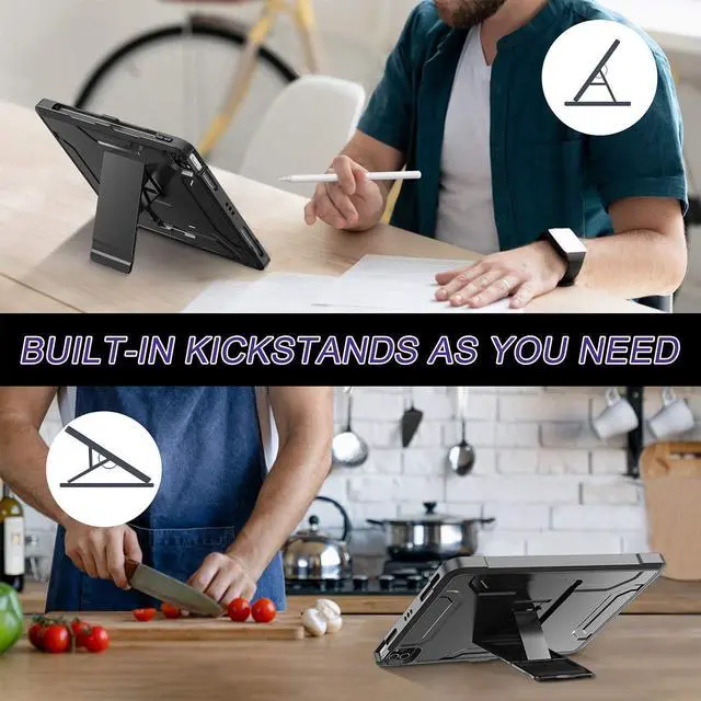 Adjustable Angles The built-in robust kickstand offers two different angles for your iPad, so you can find the best angle for watching video, working or typing. FREE YOUR HANDS!
