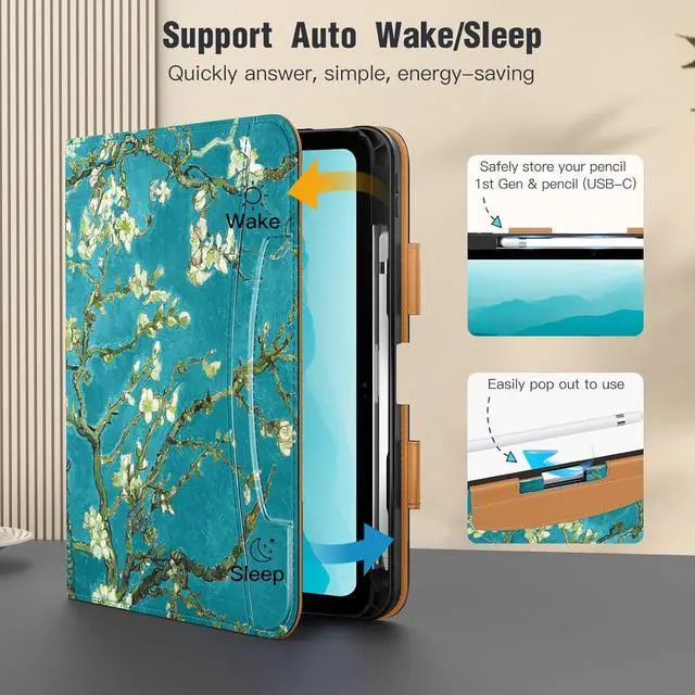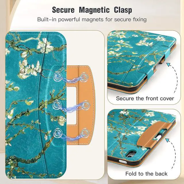 Auto Wake/Sleep & Secure Magnetic Clasp: Magnetic smart cover supports auto wake/sleep function. The powerful magnetic clasp secures the a16 iPad case when closed and flips to attach magnetically to the back cover when opened
