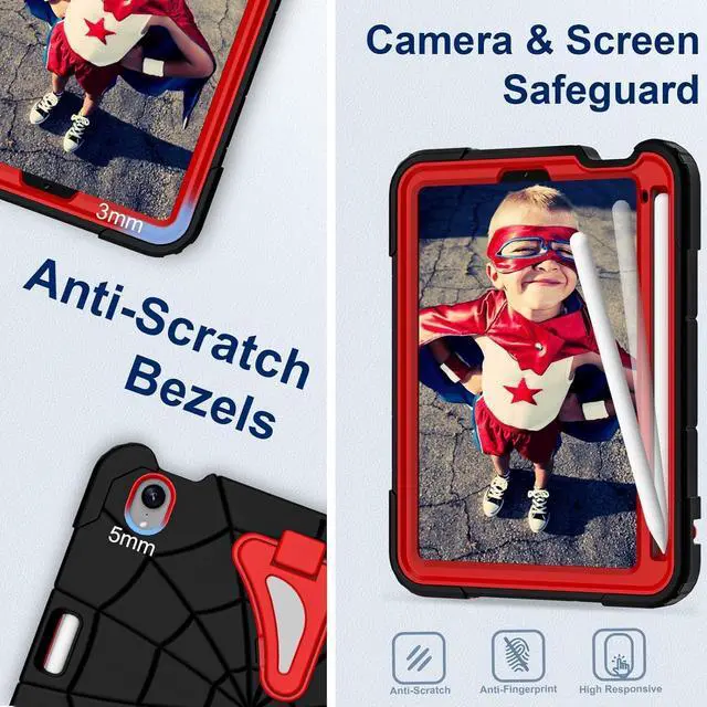High-Quality Material The case is made from high-grade thermoplastic polycarbonate and anti-skidding silicone, to create a perfect protection for your iPad. Not only shockproof/durable but also comfortable hand feeling. The sturdy ipad mini 7/6 toddlers case also ideal for kids, boys, girls, it can keep safe from shock, drop, scratch or accidental damages in daily use.