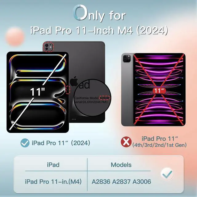 Supports Pencil Pro/Pencil (USB-C). Designed for iPad Pro 11-inch M4 (2024). Fit iPad