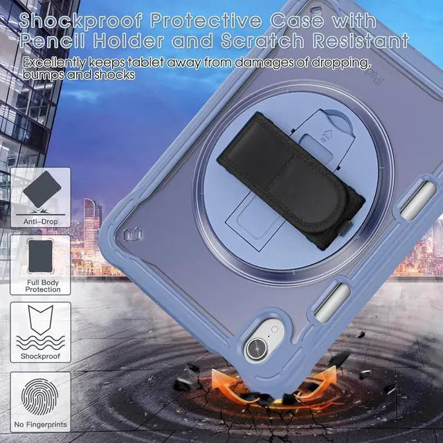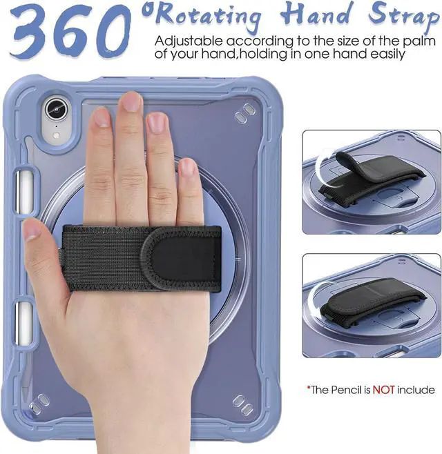 360° Rotatable Kickstand and Velcro Handle: This iPad case features a rotatable and collapsible kickstand that allows you to position your iPad as you see conveniently, suitable for drawing, studying, working or watching a movie. The adjustable Velcro hand strap is easy to grip and ideal for students, teachers, doctors and waiters