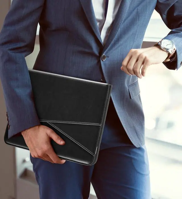 Auto Sleep/Wake features, automatically wakes up the device or turns it off. Features dual front pockets document card pocket to keep notes, cash, and cards