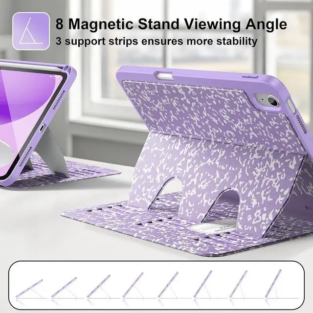 Multi angles8-angles magnetic stand shell creates different angles for viewing or typing, ensures stability and convenience; magnet secures the iPad 11th/10th generation case closure, easy to snap on and off