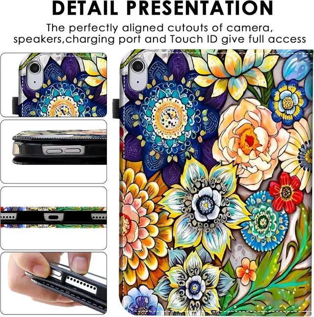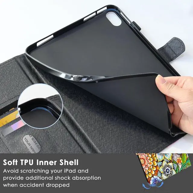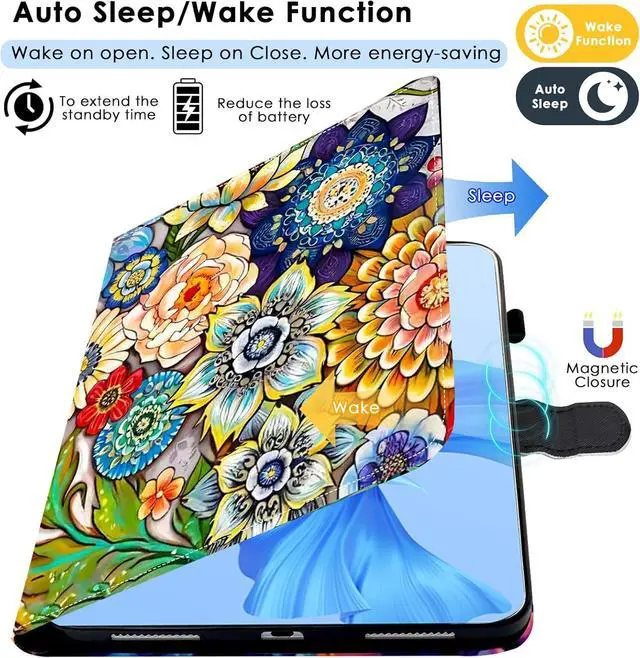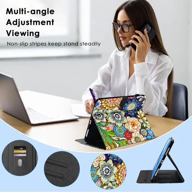 Premium Material & Pretty Boho Flowers Design- Premium soft shockproof PU leather with vivid 3D Printed Boho Floral Pattern lined with soft interior microfiber give you full protect to prevent drop and scratches. Anti-slip stripes design, you are allowed to you are allowed to set up the iPad (A16) Case multiple horizontal stand angles for viewing or typing, more firmer as support when using it