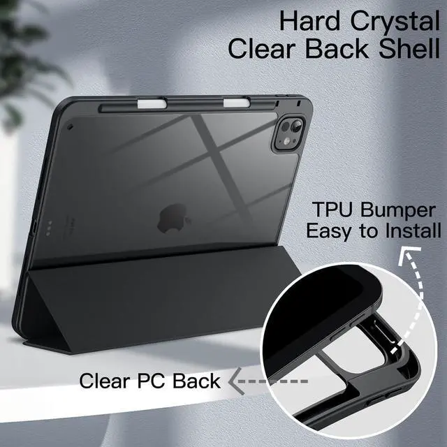 [Clear Crystal Back] Built with flexible TPU bumper and transparent hard PC back shell for showing the original beauty of your device. Highly protect your iPad against scratches and bumps, while making it easy to install or take it off