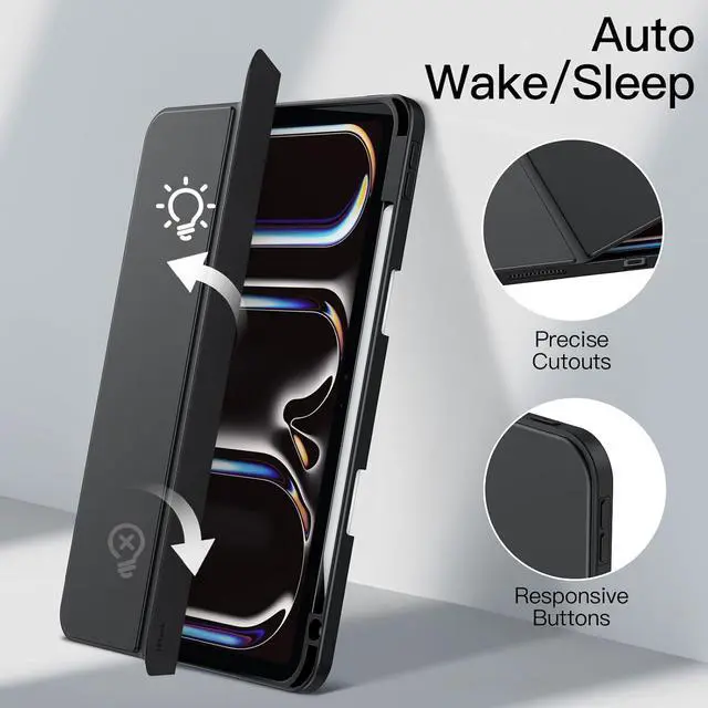 [Precise Cutouts] Magnetic smart cover supports automatic sleep/wake function. Perfectly aligned cutouts for easy access to speakers, buttons and other ports