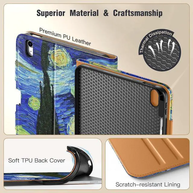 Full Protection: The iPad A16 case & iPad 10th generation case is made of high-quality PU leather with a soft microfiber lining and a flexible TPU back shell to provide complete protection for your precious iPad 11th generation tablet 2025 or iPad 10th generation tablet 2022, preventing impacts, scratches, and falls
