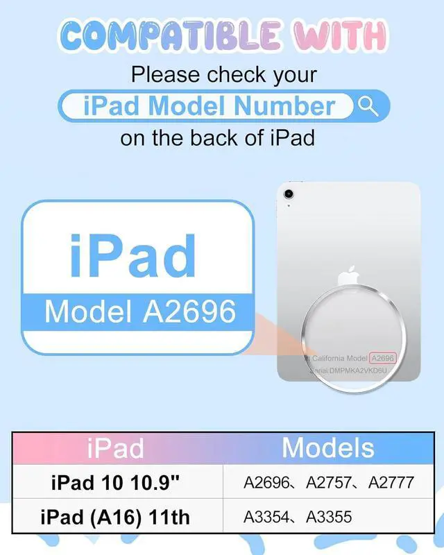 Compatibility: The cute case is ONLY compatible with iPad 10th Generation 10.9 Inch 2022//for iPad (A16) 11th Generation 11 Inch