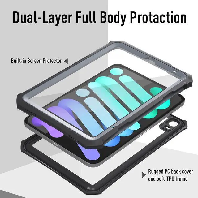 CONVENIENT SHOULDER STRAP: Newly design, make you or your kids carry iPad mini 6th Generation 8.3 Inch 2021. easily at outdoors. (ACCESSORIES - Waterproof Case * 1, Wrist Nylon Strap * 1, Cleaning Cloth * 1, Installation Manual * 1 )