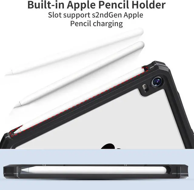 Built-in screen protector, provides full access to ports and functions while protecting from dust and scratches, can take pictures and videos underwater. Supports 2nd Gen Apple Pencil - Built-in Slot, Allows for Apple Pencil magnetic wireless charging technique without removing the case. Apple pencil can be carried anywhere at any time.