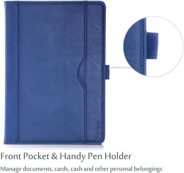 Premium composition leather exterior and soft interior offer great protection against daily use; Multiple slots able to set up multiple horizontal stand angles