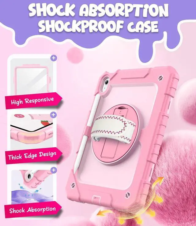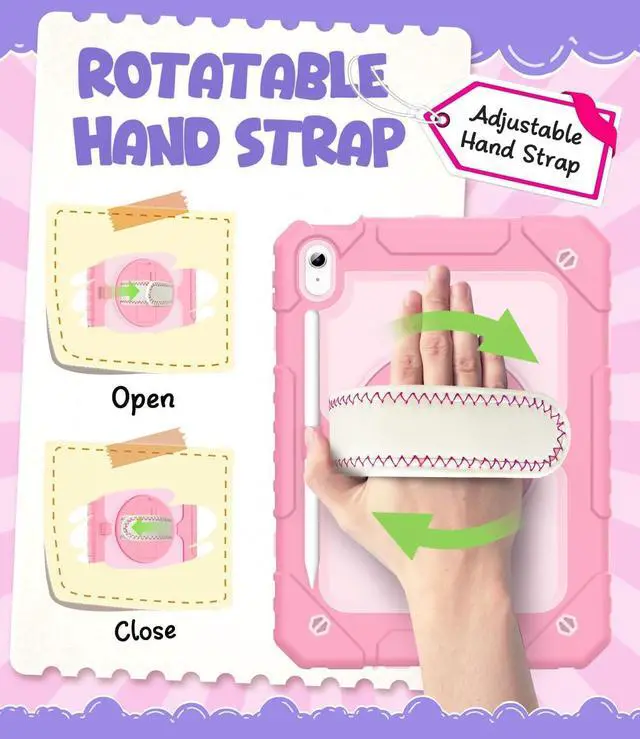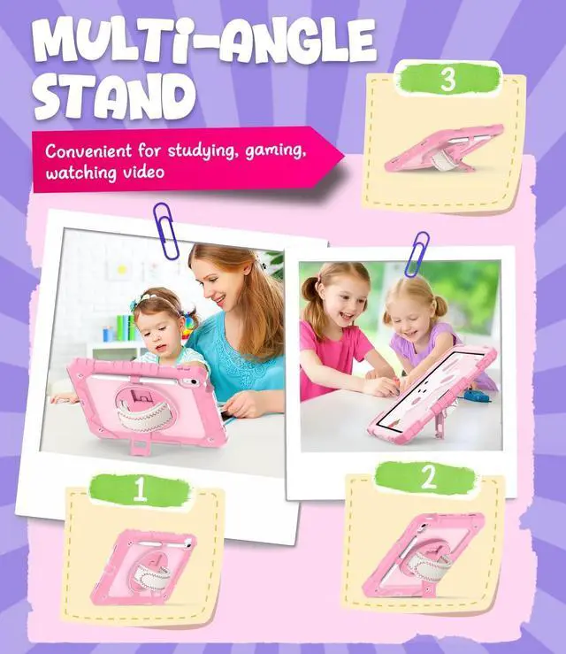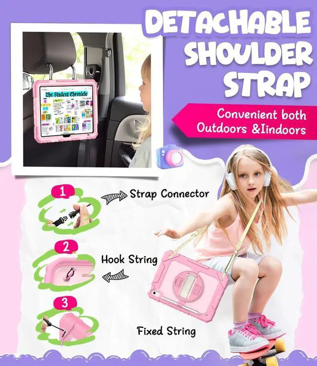 With Shoulder/Hand Strap & Rotating Stand: The ipad A16 case kids with portable shoulder/hand strap makes your tablet more conveniently outdoors & indoors. 360 degree rotating kickstand provides different typing & viewing angles for studying, gaming, watching video, etc.