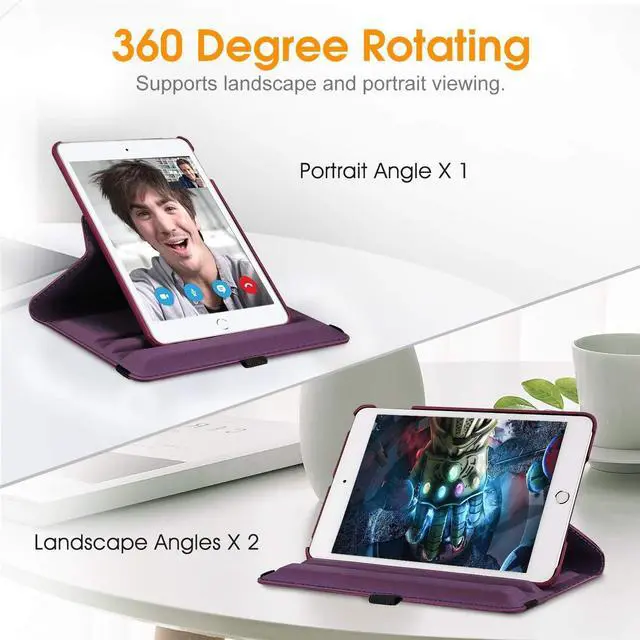 360 degree rotating structure in the case for flexible landscape and portrait viewing. Automatically wakes or puts your device to sleep.