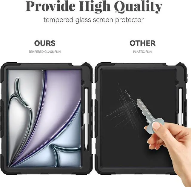 Shockproof Tempered Glass Screen Protector: Comes with a iPad 2024 2025 Air 13 inch tempered glass screen protector, it is made of high quality scratch-resistant 0.33 mm premium tempered glass with high sensitivity and transparency that works perfectly with the pencil