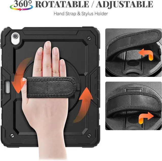 360°Rotatable Kickstand & Hand Strap: The rotating kickstand for convenient viewing and outdoor usage. The soft rotatable hand strap prevents tablet from falling, perfect for service staff, doctors, outdoor enthusiasts, office workers, children, teachers, and construction workers
