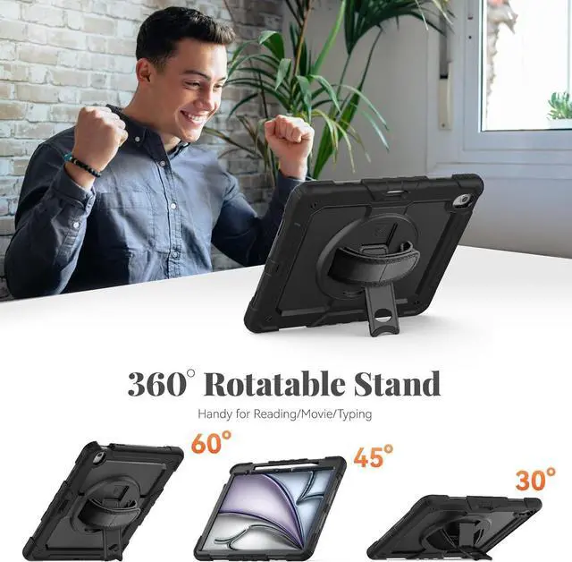 Heavy Duty Protection: Made of durable hard PC + silicone, the iPad 2024/2025 Air 13 Inch case features a 4-layer protective structure that provides full body protection against accidental drops, bumps and shocks. iPad Pencil Carryer prevents you from losing your pen (Stylus Pen is NOT Included)