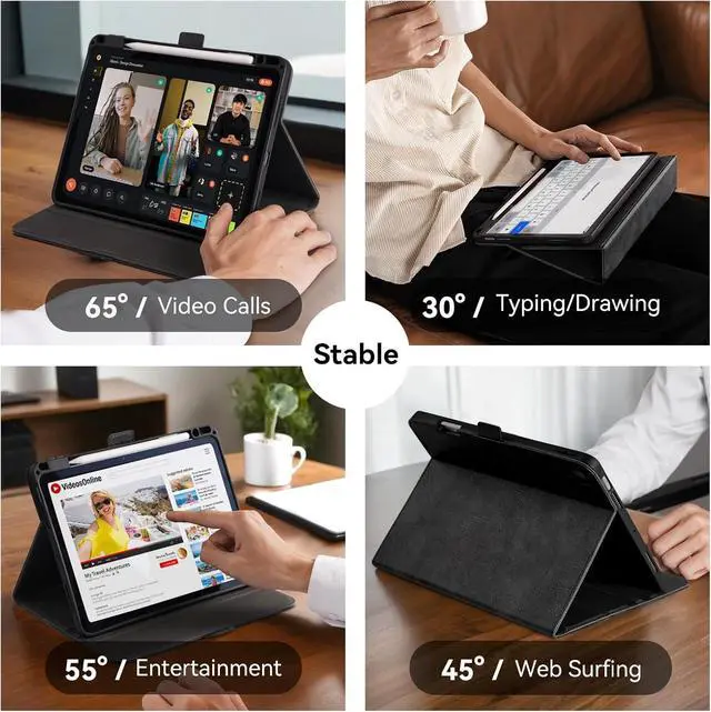 Stable Multi-Viewing Angles & Typing Angle: Featuring 3 adjustable angles, this case allows hands-free viewing movies, web browsing and video chatting. It can be folded to an ergonomic typing/drawing Angle, reducing wrist strain. Anti-slip microfiber and deepened grooves ensure stability in every position