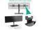 Adjustable: Monitors can shift side-to-side along the 31 arms and the arms can move up and down along the? 16? height? pole. It allows +/-90 tilt and +90/0 swivel to change reading angles and 360 rotate from landscape to portrait mode.