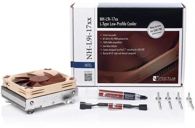 Proven premium heatsink (more than 200 awards and recommendations from international hardware websites) latest revision for Intels LGA1700 (LGA17xx family) platformOnly 37mm height allows it to fit compact HTPC and Small Form Factor (SFF) cases tailored footprint guarantees 100% RAM and PCIe compatibility on all ITX Micro-ATX and ATX LGA17xx motherboardsRenowned award-winning NF-A9x14 slim 92mm fan with Low-Noise Adaptor and