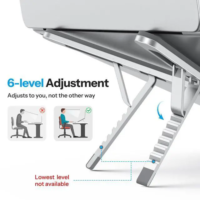 ![Alt view image 6 of 7 - LA15 Foldable & Portable Laptop Stand for Desk, [360° Support Feet+Lightweight] Tablet Stand for Desk and Travel, 6 Level Height Ergonomic Aluminum Computer Holder for 10-16" Laptops](https://c1.neweggimages.com/productimage/nb640/C5JMD260309026NZG63.jpg)