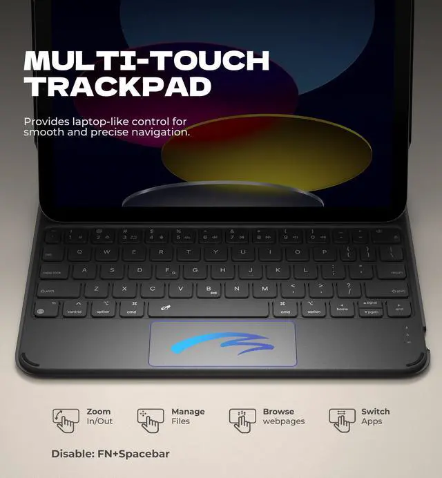 | Special Feature | Backlit keys illuminated typing, Long-lasting rechargeable battery, Auto-wake/sleep, High precision click-anywhere trackpad, Magnetic detachable removeable, Magnetic clasp, Pencil Holder, Smart Magnetic Keyboard Folio with Rock-solid stability to type on laptop (NOTE: NOT Floating), Ultra-thin slim lightweight portable compact |